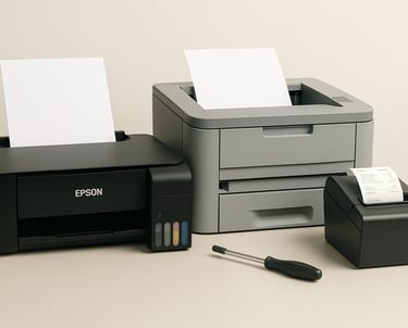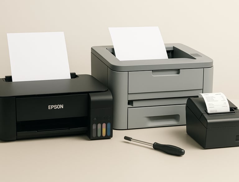 Atendemos impressoras Ecotank, laser e térmicas com serviços de manutenção, reparo e limpeza.